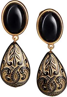 Sehr leichte große Ohr-Clips vergoldet Stein schwarz Anhänger Tropfen Ornamente stilvoll festlich edel Statement Mode Glamour Designer JUSTWIN