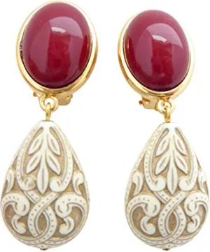 Sehr leichte große Ohrstecker Ohrringe vergoldet Stein wein-rot Anhänger beige Tropfen Ornamente elegant stilvoll Geschenk Fest Designer JUSTWIN