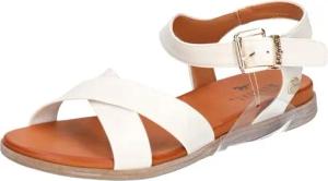Damen Sandale Schnalle Kreuzriemen Holzoptik 1424-808, Größe:42 EU, Farbe:Weiß