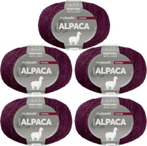 Alpaca-Wolle zum Häkeln/Stricken, temperaturregulierend, angenehm weich, für Damenoberbekleidung, Rosa (Fuchsia), 5 Knäuel