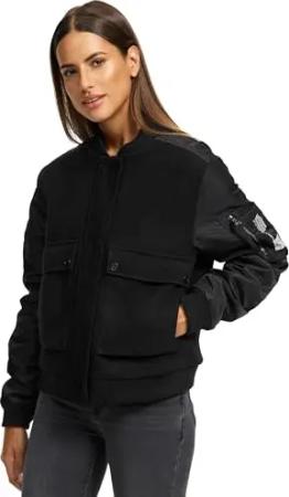 Damen Bomberjacke leichte Übergangsjacke mit Ärmelraffung Willstehaben 14 Black Gr. S
