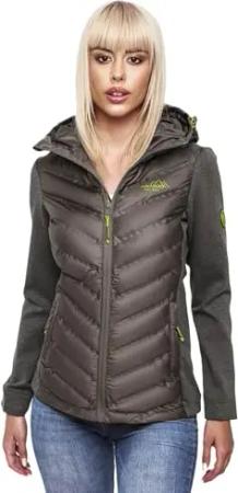 Damen Fleece Hybrid Jacke Wanderjacke Kapuzenjacke B852 [B852-Nimm-Dunkelgrau-Gr.XS]