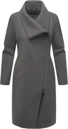 Damen lange Übergangsjacke Mantel in Woll-Optik mit asymmetrischem Kragen und wasserdichtem Reißverschluss Samtrose 14 Anthracite Gr. XL
