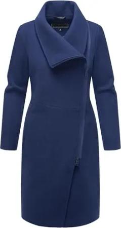 Damen lange Übergangsjacke Mantel in Woll-Optik mit asymmetrischem Kragen und wasserdichtem Reißverschluss Samtrose 14 Navy Gr. 3XL