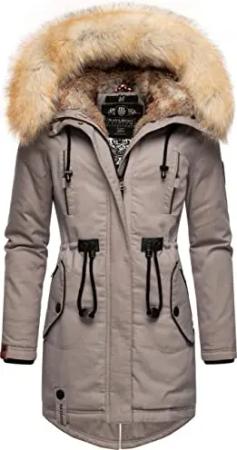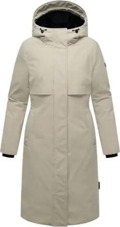 Damen langer Wintermantel warmer Parka mit hohem Stehkragen und magnetischer Abdeckleiste Traumblüte 14 Taupe Grey Gr. M