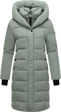 Damen Langer Wintermantel warmer Steppmantel mit abnehmbarem Kragen-Einsatz Laubzauber 14 Smokey Mint Gr. XL