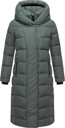 Damen Langer Wintermantel warmer Steppmantel mit innenliegenden Rucksackträgern und Magnet-Knöpfen Engelsfeder XIV Stone Green Gr. L
