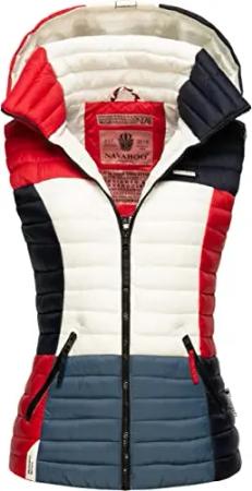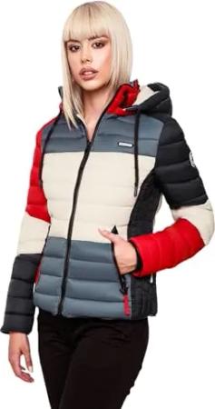 Damen Steppweste leicht mit Abnehmbarer Kapuze Colourblocking-Stil Shadaa Multikulti Multicolour French-Tricoloree Gr. XS