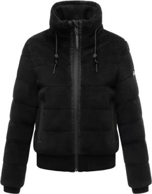 Damen Teddy-Fleecejacke warme Winterjacke Plüschjacke mit Rippstrickdetails Schneepuder 14 Black Gr. L