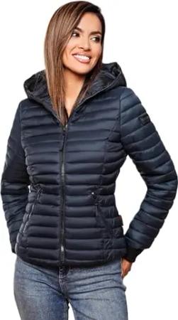 Damen Übergangs Stepp Jacke mit Kapuze B348 [B348-Kimuk-Navy-Gr.M]