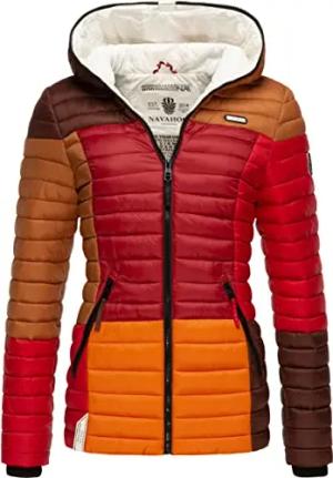 Damen Übergangsjacke Colorblocking leichte Steppjacke mit Kapuze Multikulti Multicolour Autumn Leaves Gr. XS