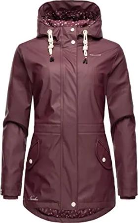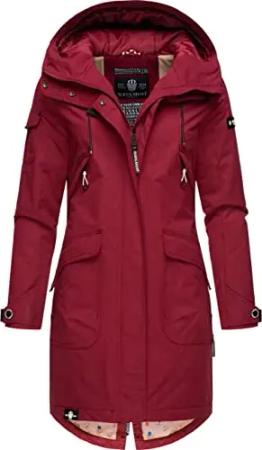 Damen Übergangsjacke Regenmantel wasserdicht lang warm gefüttert mit Kapuze Oceans Heart Wine Gr. S