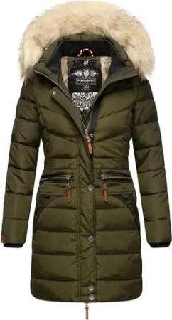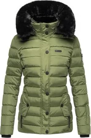 Damen warme Winter Steppjacke mit abnehmbarer Kunstfell-Kapuze Milianaa Pine Olive Gr. S