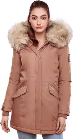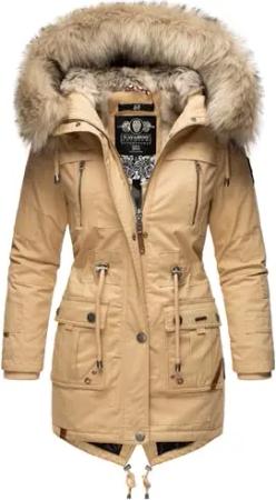 Damen Wintermantel Baumwolle Parka mit Kapuze Kunstpelz Honigfee S-XXL (DE/NL/SE/PL, Alphanumerisch, XS, Regular, Regular, Beige)