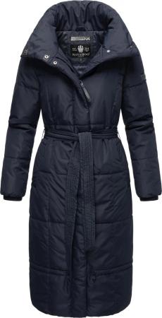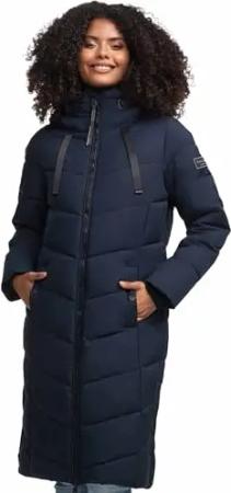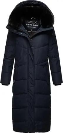 Damen Wintermantel warmer Steppmantel extralang mit abnehmbarer Kapuze Hingucker XIV Navy Gr. XS