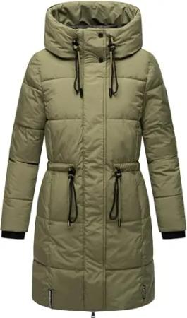 Damen Wintermantel kurzer Steppmantel mit Kapuze Zuckertatze XIV Olive Leaf Gr. XL