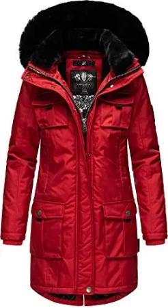 Damen Wintermantel warmer Steppmantel mit Kapuze Bliblablubb 14 Salsa Red Gr. S