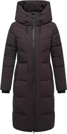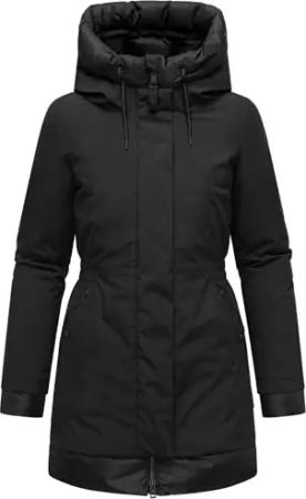 Damen Wintermantel warmer Steppmantel lang mit Kapuze und abnehmbarem Fleece-Kragen Knutschilein Black Gr. L