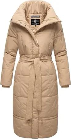 Damen Wintermantel Warmer Steppmantel extralang mit Gürtel Mirenaa Beige Gr. XXL