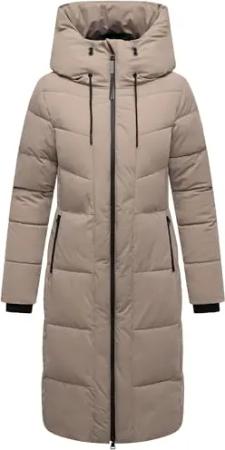 Damen Wintermantel warmer Steppmantel mit 2-Wege Reißverschluss, wasserdichten Reißverschlüssen und verstellbarer Kapuze Schokokuss XIV Taupe Grey Gr. 6XL