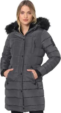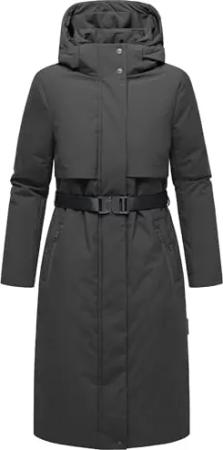 Damen Wintermantel warmer Parka lang mit hohem Kragen und weicher Kapuze Hokulanii Dark Grey Gr. XL