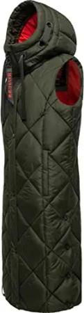 warme Damen Winter Steppweste lang mit Kapuze Schnuckel Dark Olive Gr. S