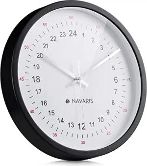 24h Wanduhr rund mit schwarzem Ziffernblatt - 30 x 30 x 4cm - analoge Uhr zum Aufhängen mit 24 Stunden Zifferblatt - leise Wand Uhr