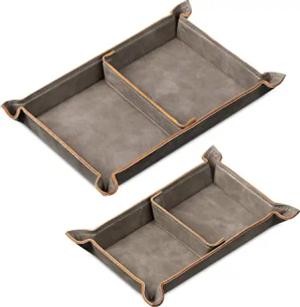 Lederschale Tablett aus Kunstleder - 2x Schale Ablage Leder - Ablageschale für Schmuck Schlüssel Münzen Handy - Uhrenablage Schlüsselablage Organizer - grau