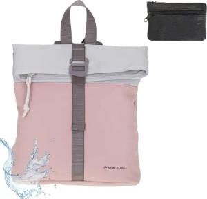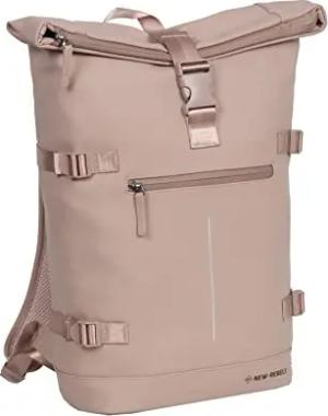 Unisex Wasserabweisender Rolltop-Rucksack – 21l Rolltop-Backpack mit 15,6-Zoll-Laptopfach – Reiserucksack mit Klickverschluss – Rucksack mit Vordertasche – flexible Aufbewahrung - Altrosa