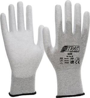 NITRAS ESD-Handschuhe 6230T, antistatisch, touchscreenfähig, teilbeschichtet auf Fingerkuppen - VPE 240 Paar, Größe:10