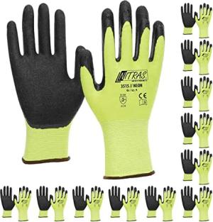 3515 Neon Strickhandschuh mit gesandeter Nitrilbeschichtung neongelb. Bauhandschuh, VPE 12 Paar, Größe:10