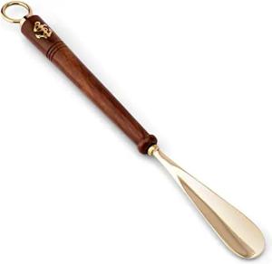 46cm Schuhlöffel lang aus Messing gold mit Holzgriff Schuhanzieher stabil 11729