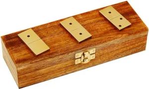 Domino-Box aus Mango-Holz und Messing, 20,5x7x5cm – Maritime Dekoration, Retro Domino Set 15937