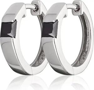 Paar Ø 16mm 925 Sterling Silber Klappcreolen Zirkonia schwarz Ohrringe rhodiniert 2117