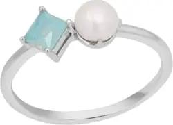 Ring 925 Sterling Silber Damen Ringe, mit Schmuckstein synth., mit Süßwasserzuchtperle, Blau, Kommt in Schmuck Geschenk Box, 2039641