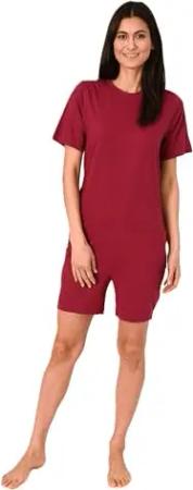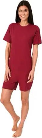 Damen Pflegeoverall Kurzarm Schlafanzug mit Langen Bein und Reißverschluss am Bein, Farbe:Beere, Größe:L