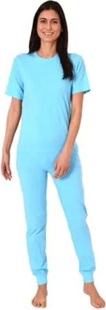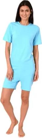 Damen Pflegeoverall Kurzarm Schlafanzug mit Langen Bein und Reißverschluss am Bein, Farbe:türkis, Größe:XS