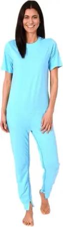 Damen Pflegeoverall Kurzarm Schlafanzug mit Langen Bein und Reißverschluss am Rücken, Farbe:türkis, Größe:M