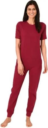Damen Pflegeoverall Kurzarm Schlafanzug mit Langen Bein und Reißverschluss am Rücken, Farbe:Beere, Größe:XL