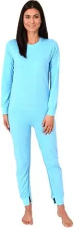 Damen Pflegeoverall Langarm Einteiler Schlafanzug mit Reißverschluss am Bein, Farbe:türkis, Größe:M
