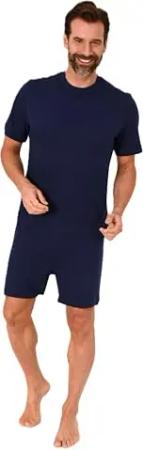 Herren Pflegeoverall Kurzarm Schlafanzug mit Langen Bein und Reißverschluss am Bein, Farbe:blau, Größe:M