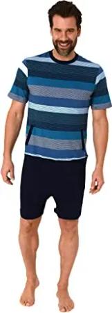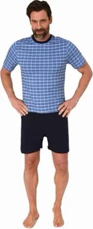 Herren Pflegeoverall Kurzarm Schlafanzug mit Langen Bein und Reißverschluss am Bein, Farbe:blau, Größe:S