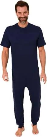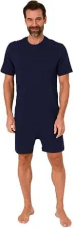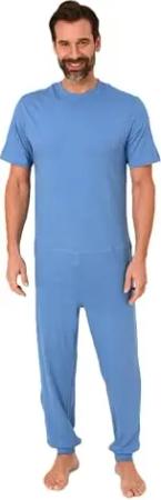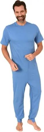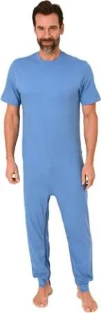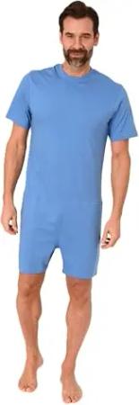 Herren Pflegeoverall Kurzarm Einteiler Schlafanzug mit Reissverschluss am Rücken und Bein, Farbe:blau, Größe:M