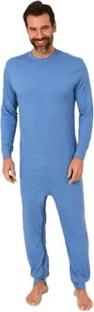 Herren Pflegeoverall Langarm Einteiler Schlafanzug mit Reißverschluss am Bein, Farbe:hellblau, Größe:S