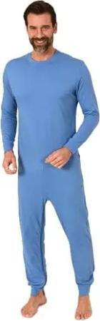 Herren Pflegeoverall Langarm Einteiler Schlafanzug mit Reissverschluss am Rücken und Bein, Farbe:blau, Größe:XS