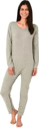 Pflegebody Langarm - Unisex - Einteiler Body Schlafananzug mit Beinreißverschluss, Farbe:grau, Größe:S