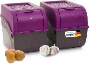Kartoffel Aufbewahrungsbox | 2X groß 9L | LILA | Zwiebelbox | Gemüsebox stapelbar Kartoffelbox Zwiebel Aufbewahrung Kartoffelkorb Obstbehälter Kartoffelkiste Frischhaltedose…