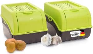 Kartoffel Aufbewahrungsbox | 2x groß 9L | GRÜN | Kartoffelbox | Gemüsebox stapelbar Zwiebelbox Kartoffelkorb Obstbehälter Kartoffelkiste Zwiebel Aufbewahrung Frischhaltedose Möhren