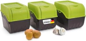 Kartoffel Aufbewahrungsbox | 3x groß 9L | GRÜN | Kartoffelbox | Gemüsebox stapelbar Zwiebelbox Kartoffelkorb Obstbehälter Kartoffelkiste Zwiebel Aufbewahrung Frischhaltedose Möhren
