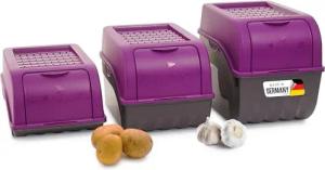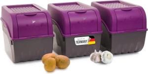 Kartoffel Aufbewahrungsboxen Set | 3,5L + 5L + 9L | LILA | Kartoffelboxen | Gemüseboxen stapelbar Zwiebelboxen Kartoffelkörbe Obstbehälter Kartoffelkisten Frischhaltedosen